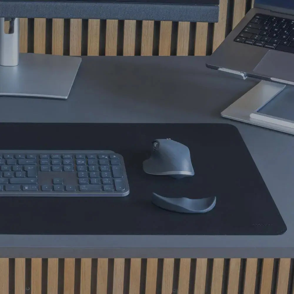 The MATDESK is a stylish desk pad made of high-quality synthetic leather with a soft microfiber backing.